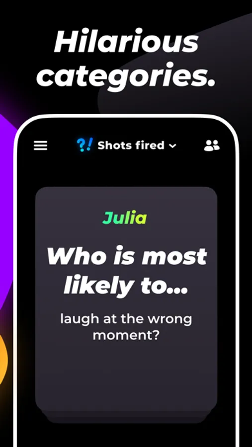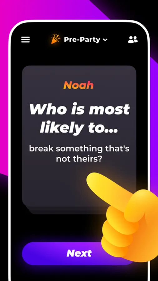 Most Likely To is a wild party game for adults. Find out what your friends think about you and who they think is most likely to do absurd things. It’s a crazy party game for house parties, pre-parties, frat-parties, and all other gatherings.
