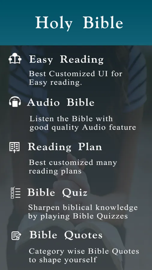 Start your day fresh with a Daily Verse and Carry your soft-copy of NIV Bible The Holy Version with you anytime and anyplace you are or wish to go, and share God's Word to spread light and love to your close ones. NIV Bible The Holy Version App offers immaculate friendly features that will make your daily Bible reading a wonderful experience. Download Now!