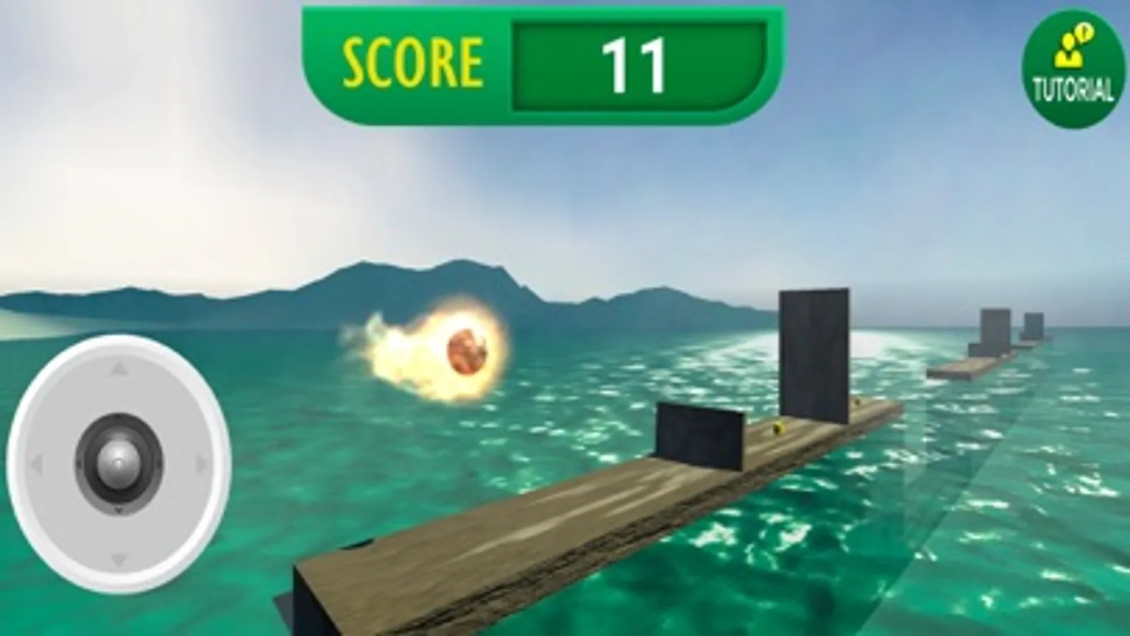 Test your skills by jumping from one stretch to another, crossing hurdles in the way with the fireball. Make sure you don't fall into the water and recharge the fireball from the yellow mini pillars on the way. Make high scores and share them with your friends and followers on social media.
