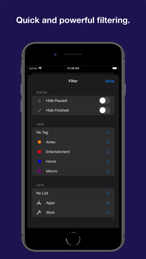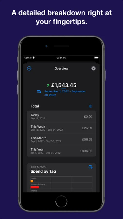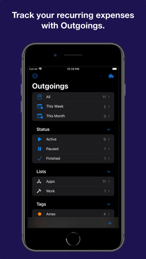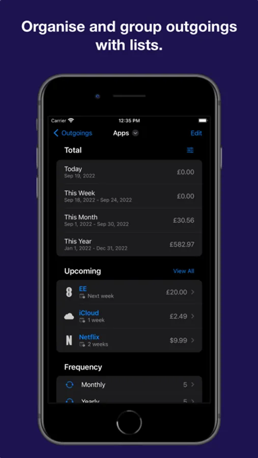 - Organise and group outgoings with lists and tags for a more detailed breakdown.