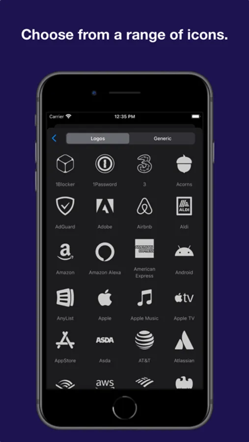 - Choose from more than 200 recognisable brand icons or import your own.