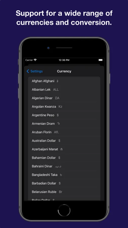 - Support for a wide range of currencies and conversion to ensure you're always viewing the correct amount.