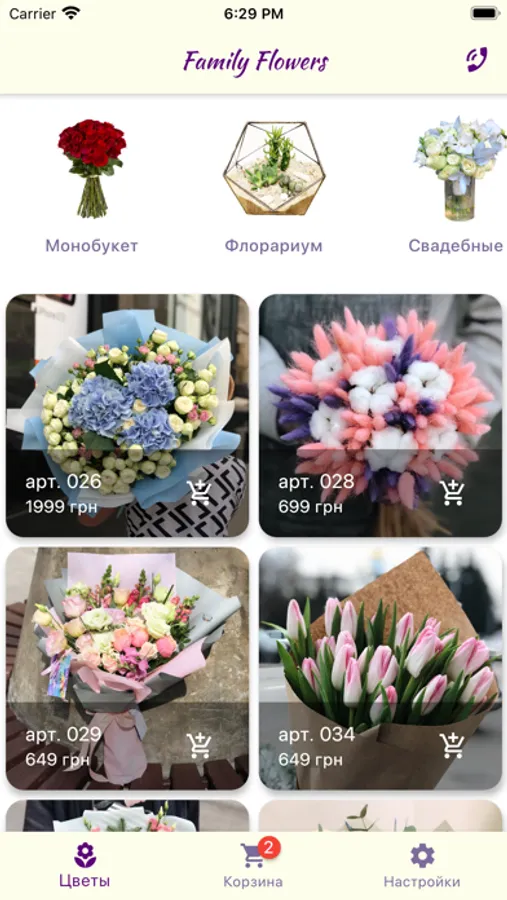 Family Flowers - приложение которое позволяет заказать букет свежих цветов с доставкой по городу Харьков. Приложение не имеет регистрации, а сам процесс заказа является очень простым и интуитивно понятным. Цветы в приложении доступны для заказа круглосуточно, а доставка курьером осуществляется ежедневно с 9:00 до 19:00 после 100% предоплаты.