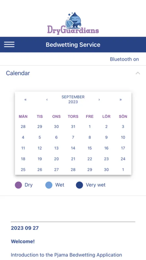 Registration of daily information of how bedwetting treatment progresses can easily be done and shared with healthcare providers.