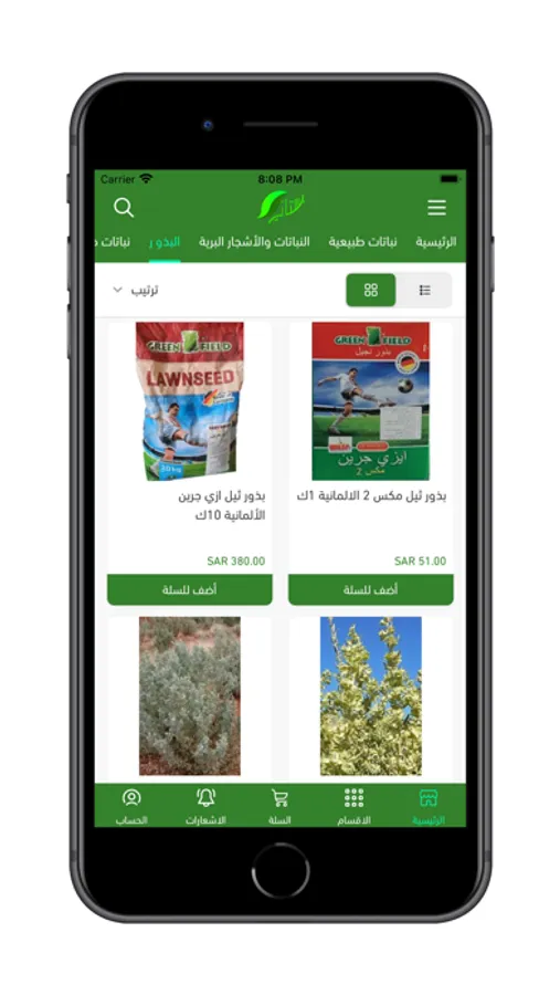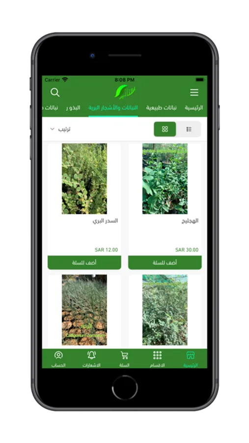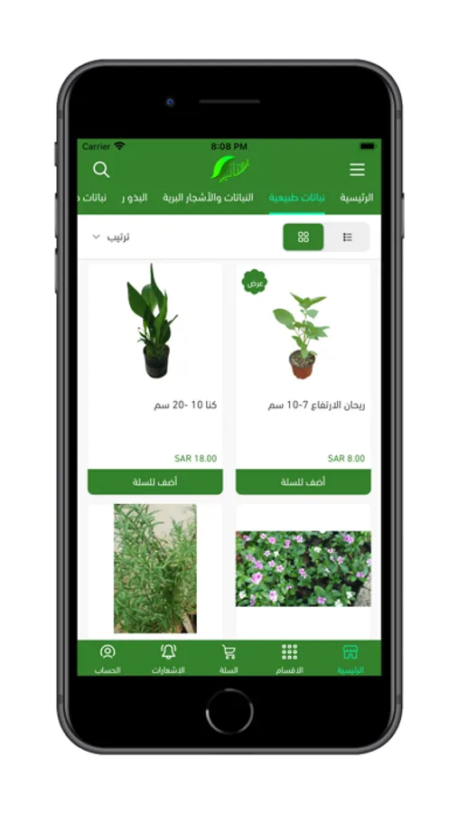 تطبيق لبيع النباتات الداخلية والخارجية واشجار الزينة والبذور والعدد الزراعية وكل مايخص حديقة المنزل بأسعار تنافسية .
