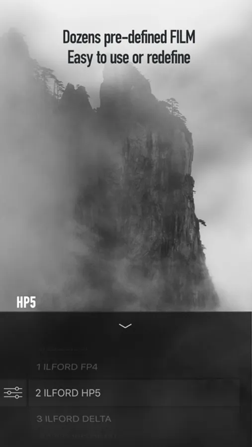 3. It enables imitation of real classic film precisely, so that you can snap a B&W photo by "real" classic film (HP5、Delta、T-MAX……), without a photo editor.