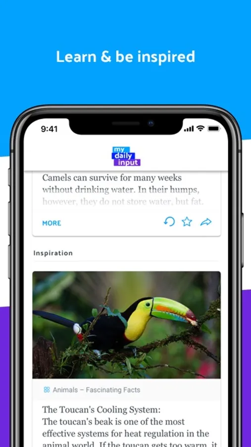 The right topic mix of tricky learning facts and light entertainment is always in your hands. We hope to support you with the My Daily Input app.