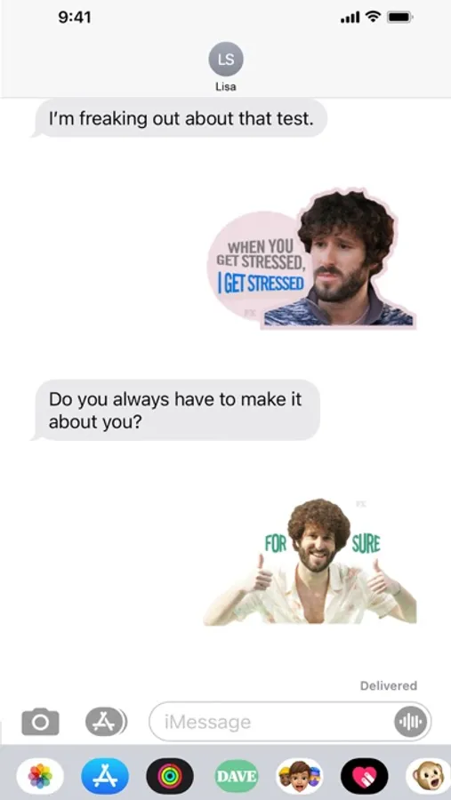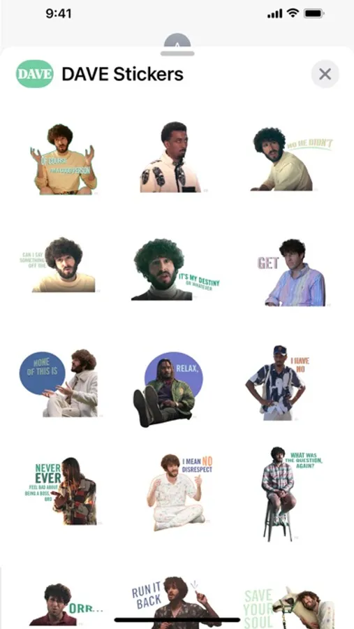 DAVE certainly has a unique way of expressing himself. With the all-new DAVE stickers, you can let him do all the awkward talking for you.