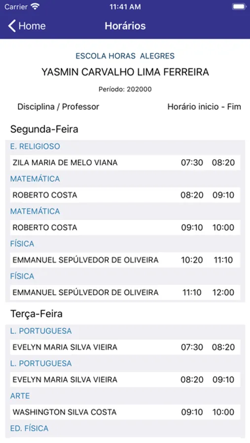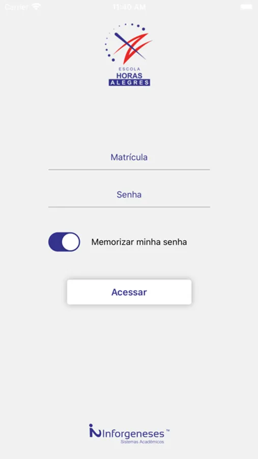 Aplicativo para acesso dos alunos e pais da Escola Horas Alegres.