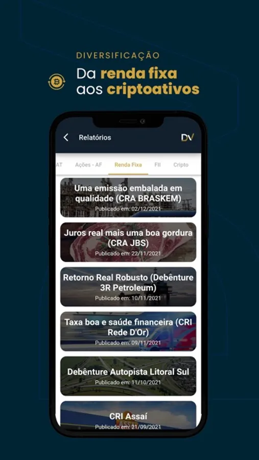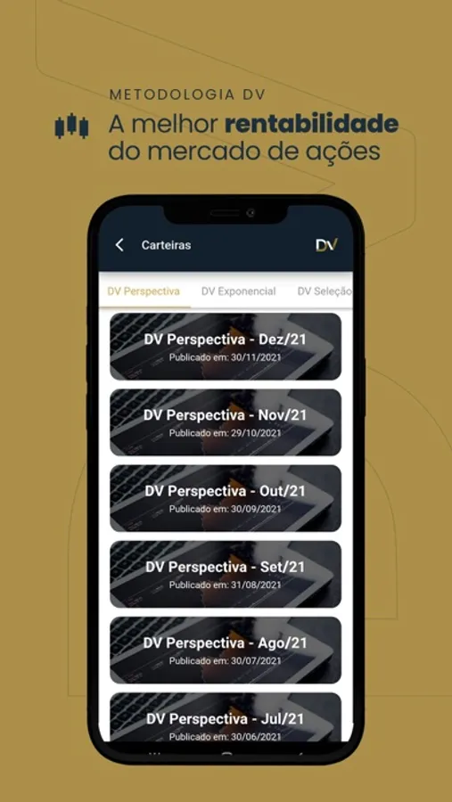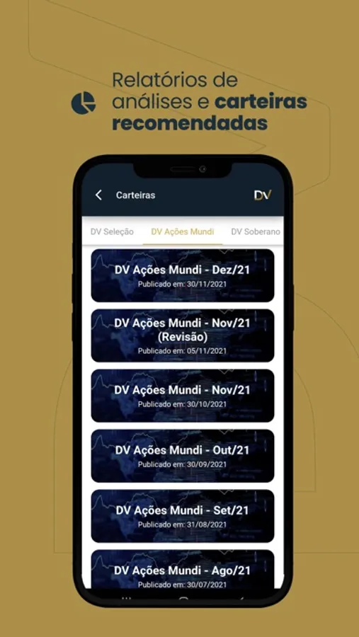 A DVinvest é uma casa de análise de investimentos que facilita o relacionamento do investidor com o mercado financeiro. Tudo isso, com a praticidade de ter na palma da mão, via este aplicativo, a solução que o investidor busca