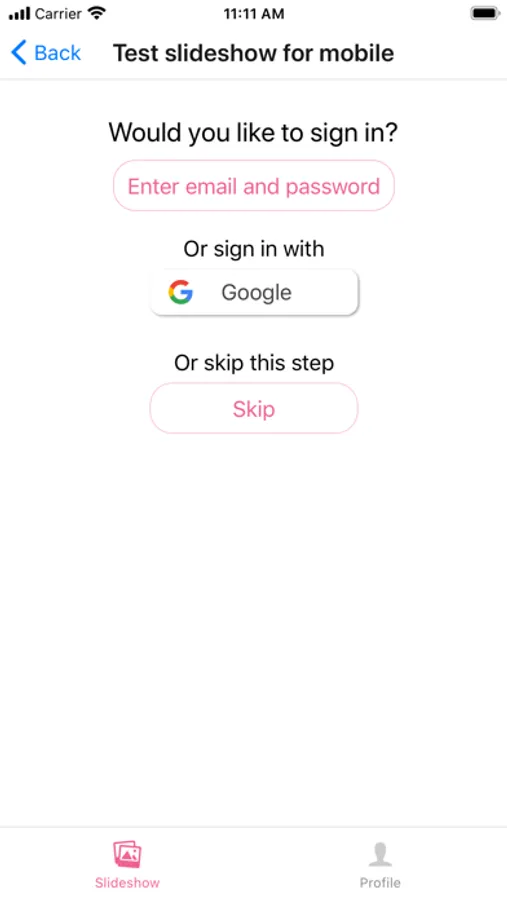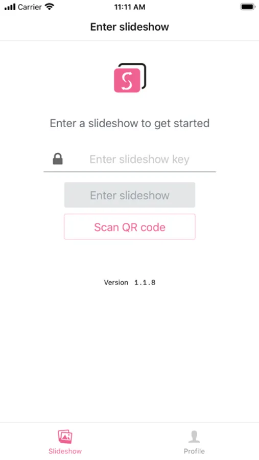 1. You start by entering the slideshow key or by scanning the slideshow QR code.