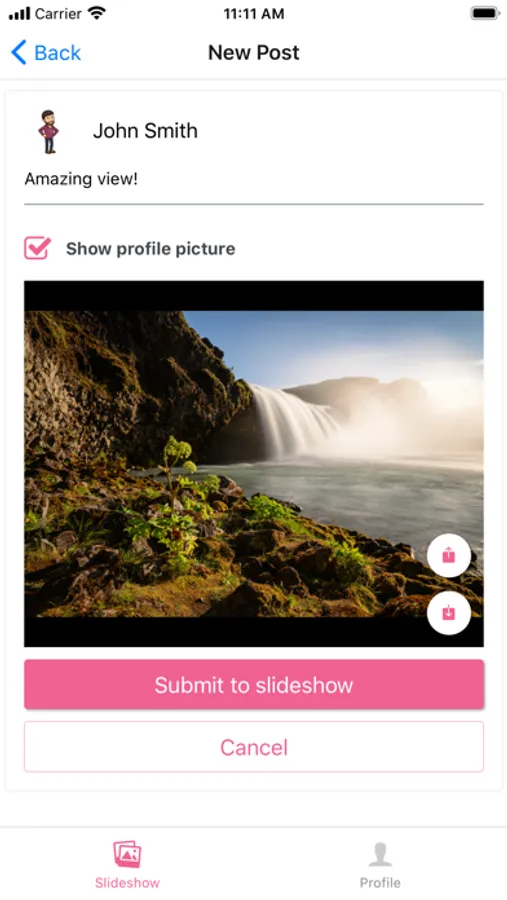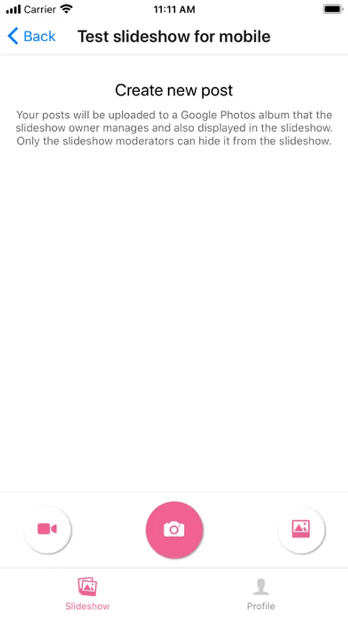 The Slidesome companion app allows you to post photos and videos to any slideshow that is powered by Slidesome.