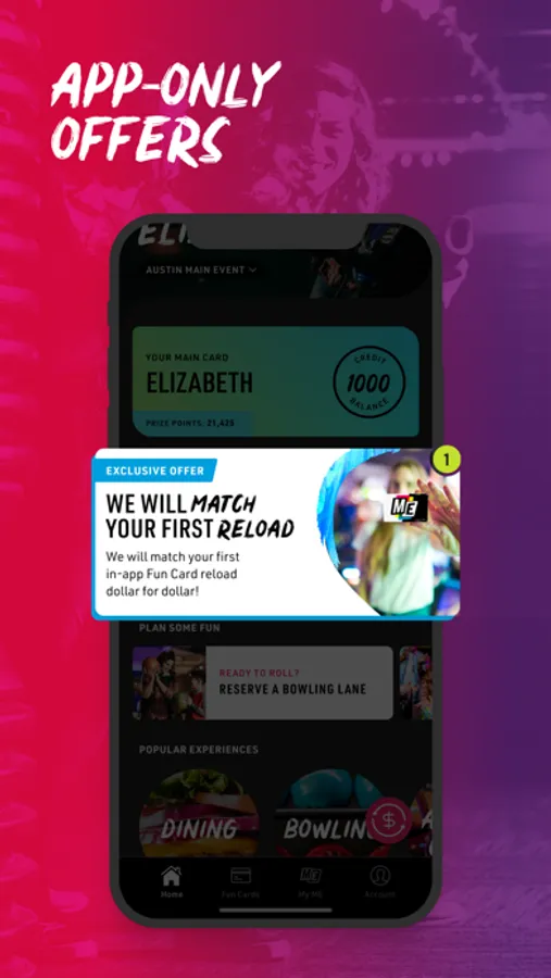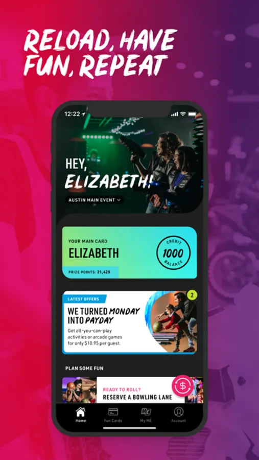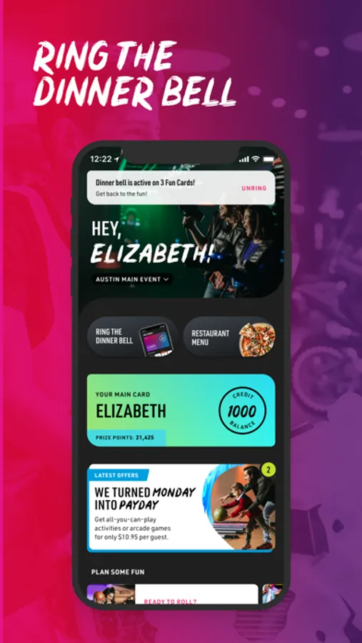 The Main Event app is a simple way to continue your amazing experiences and simplify your Main Event logistics. Spend more time on love and not in the lines with our features like fun card management & refill, booking bowling reservations, and Ring the Dinner Bell. That's not all as there are special mobile offers and much much more!