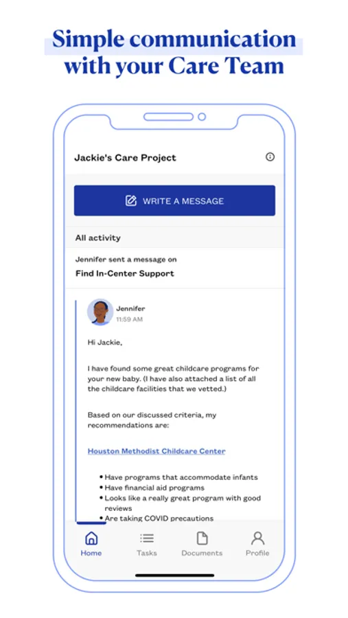 Keep everything safe and accessible, for whenever you need it. Store important documents, relevant articles and one-pagers, contacts, medications, and upcoming appointments all in one place.