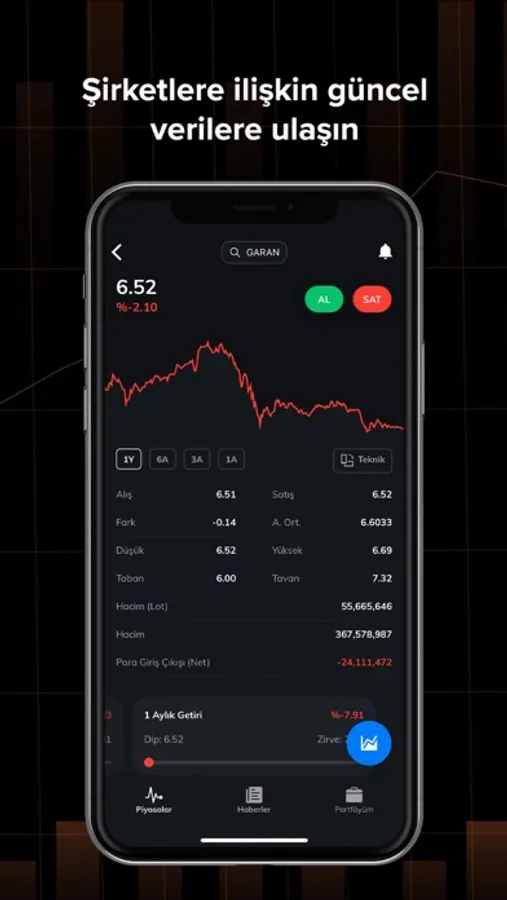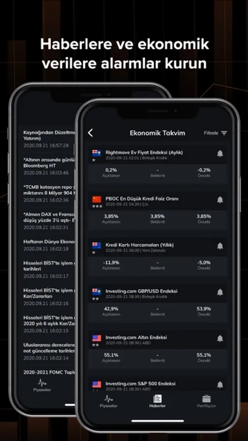 Haberlere ve ekonomik verilere alarmlar kurabilir, takip ettiğiniz şirket ve verilere ilişkin gelişmelerde anında bildirim alabilirsiniz.