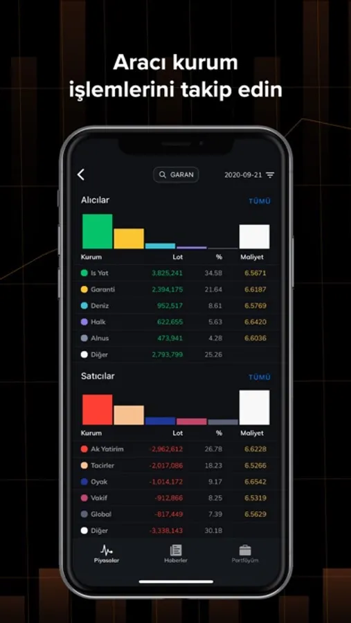 Aracı kurum işlemlerini anlık ya da bir zaman aralığında takip edebilirsiniz.