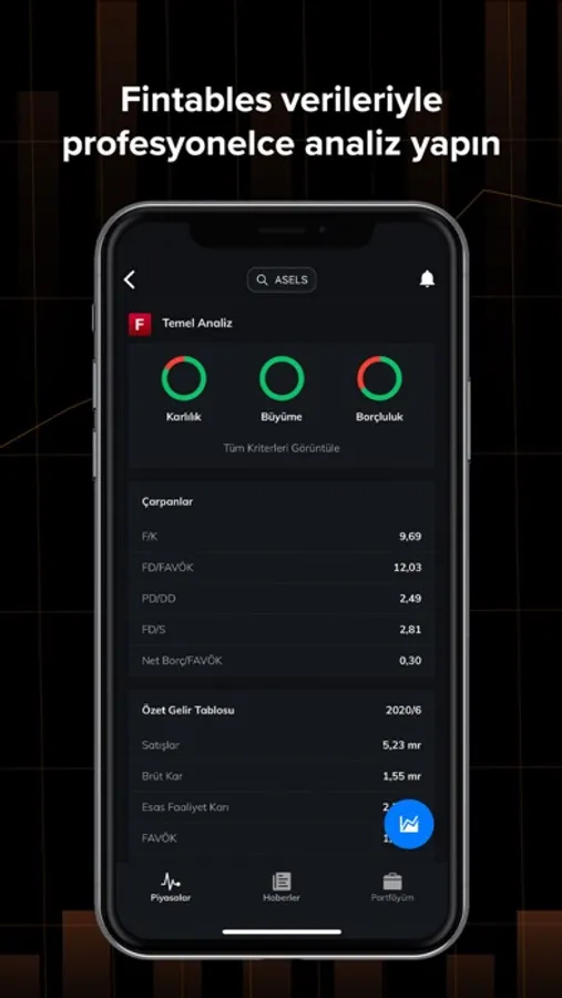 Fintables tarafından hazırlanan temel analiz verilerine ulaşabilir, cep telefonunuzdan profesyonelce finansal analiz yapabilirsiniz.
