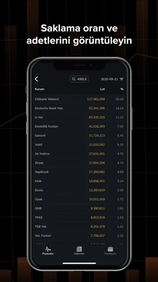 Hisse senetlerine ilişkin yerli ve yabancı güncel saklama oranlarını görüntüleyebilir, belirlediğiniz tarihler arasındaki takas değişimlerine ulaşabilirsiniz.