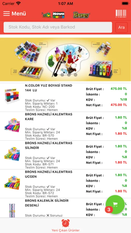 - Cihaz Kamerası ile Barkodu Taratarak Ürün Arama