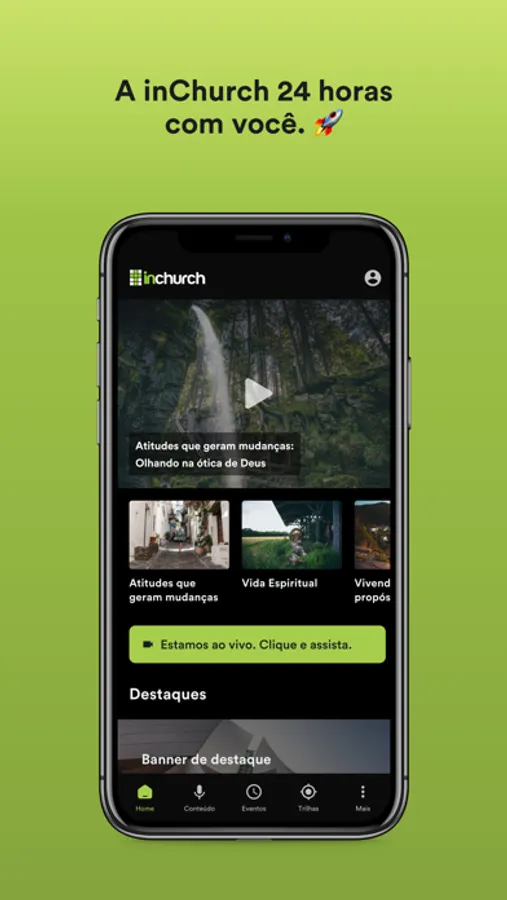 - Conecte-se com a igreja através dos grupos de interesse, receba conteúdo direcionado e obtenha sua carteirinha exclusiva.