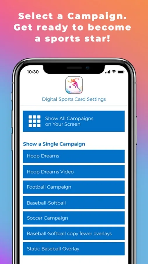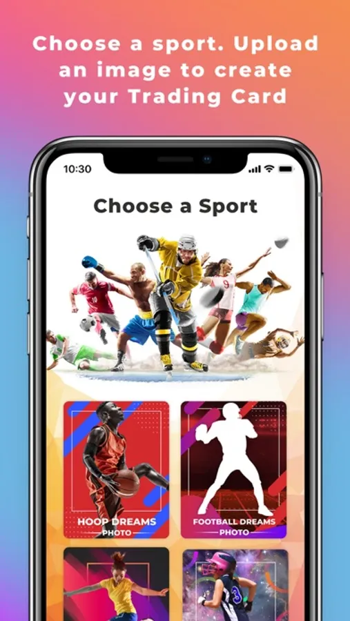 The end result of each capture is a cool, custom branded digital sports card that can promote your team, brand, or charity, and can be instantly shared on Facebook, Instagram, Twitter, Snapchat and other social media channels.