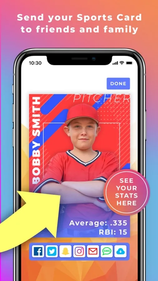 Capture youth sports player photos and videos of yourself or any family or friend. We'll treat each image with a selection of cool filters, and fun treatments. You'll be an instant sports star, in the form of your own Digital Sports Card. Add statistics manually, or have them automatically updated through association memberships (coming soon).