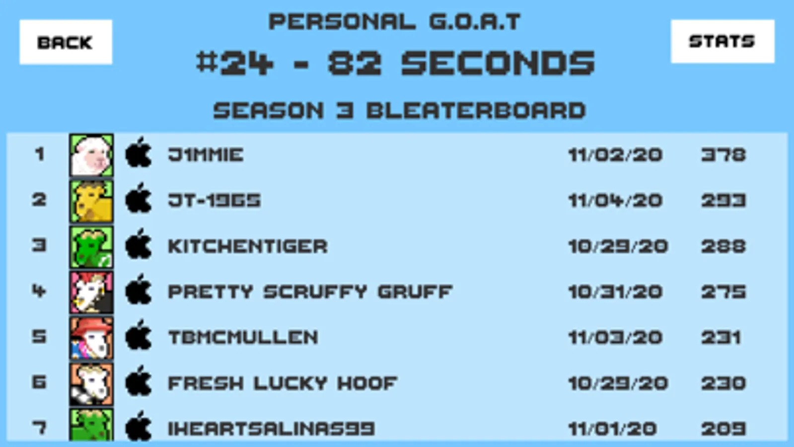 Goat bouncin' mayhem - stomp the creeps! Easy to learn, tricky to master. No ads, bad puns, cute art!