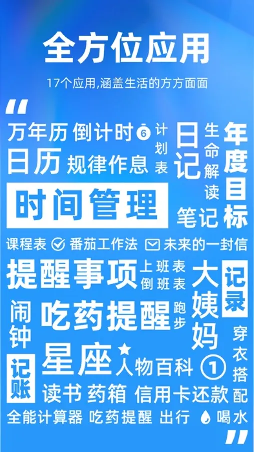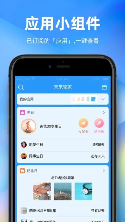 接近30款应用,全方位涵盖您的生活。无论是工作学习、繁杂的私人事务、健康习惯培养,重要日期记录,现在都可以交给未来管家!