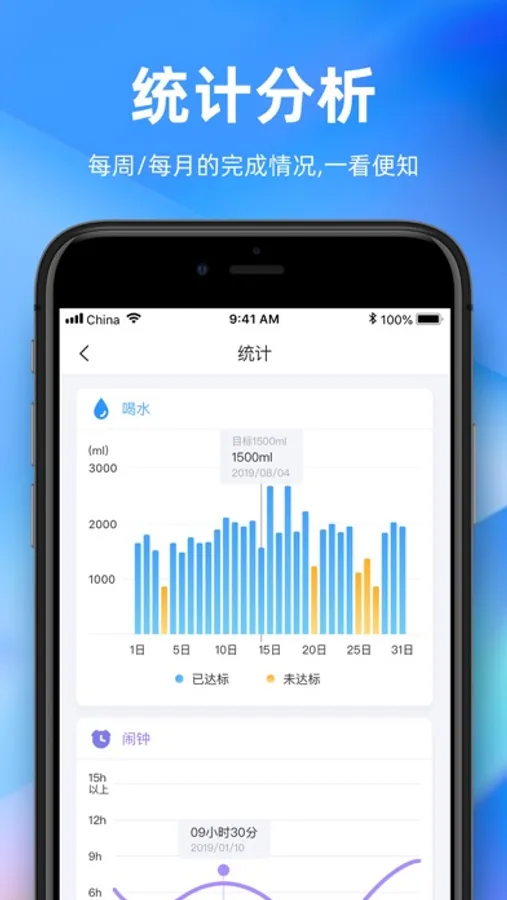 【喝水】:水源动画模拟真实喝水场景,可以自定义喝水目标,贴心提醒,保持每天水分摄入。