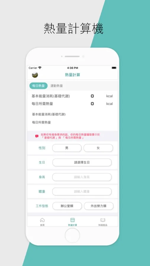 我們設計了方便又好用的日常需求熱量計算機與獨家設計領先全台首創的「運動營養機算機」,能幫您計算出做有氧運動或肌力訓練之後,應該要補充多少熱量的食物。運動後營養補給能夠有效提升運動表現之外,對於增肌也有顯著的幫助,熱量計算肌絕對是您控制體重、提升運動表現、消脂增肌最佳幫手!