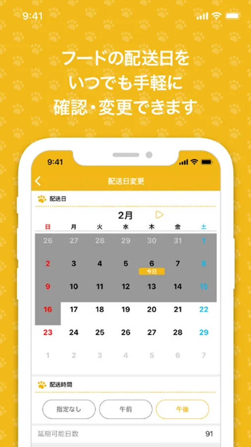 フードのお届け日が近づくと、プッシュ通知で配送をお知らせします。