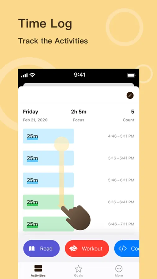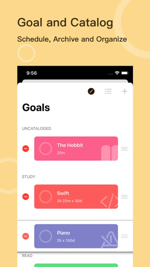 - Easy to organize the activities, setup goals through tap or long press