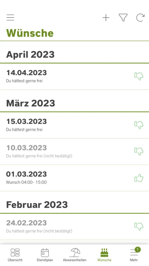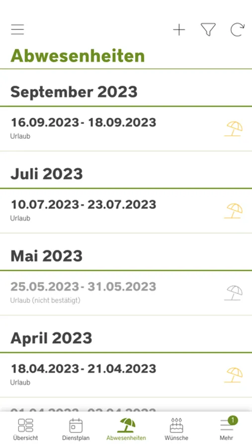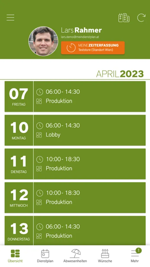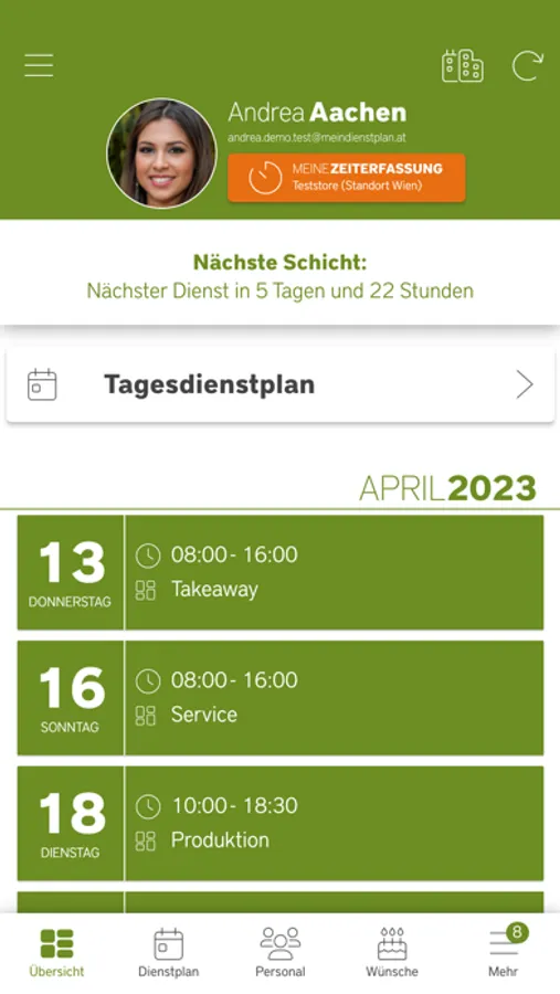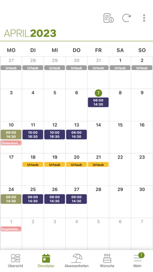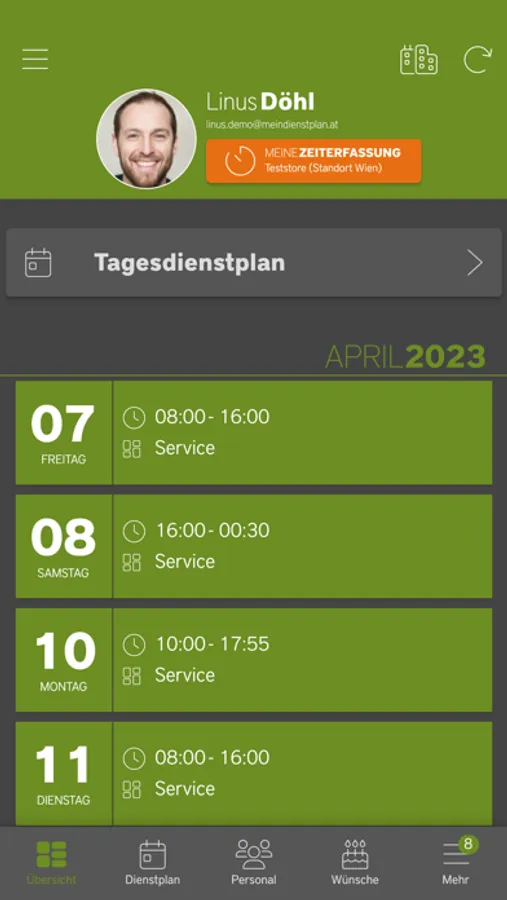 Die MeinDienstplan App bietet je nach Rolle (Mitarbeiter, Manager, Betreiber, etc.) Zugriff auf Ihre wichtigsten Daten, von Stammdaten über geplante Dienste bis hin zu Mitarbeiterwünschen, Urlauben und Abwesenheiten.