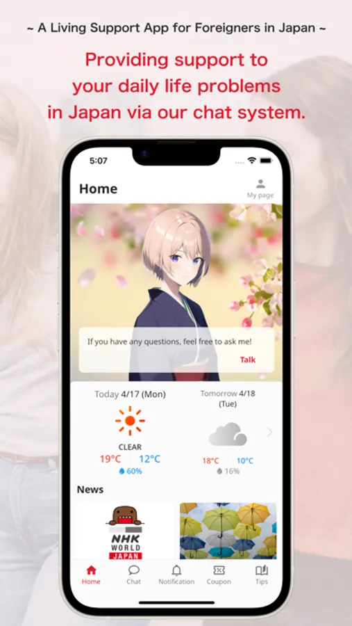 GTN is a living support app designed for foreigners living in Japan.