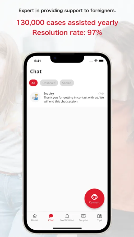 We have supported many foreigners with their everyday life in Japan; about 130,000 cases per year! With 97% of the cases being solved, we offer a high quality support system.