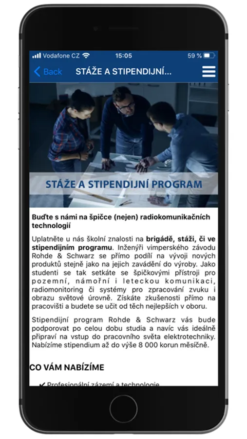 RS kariéra. Aplikace zaměřená pro studenty a absolventy technických vysokých škol.