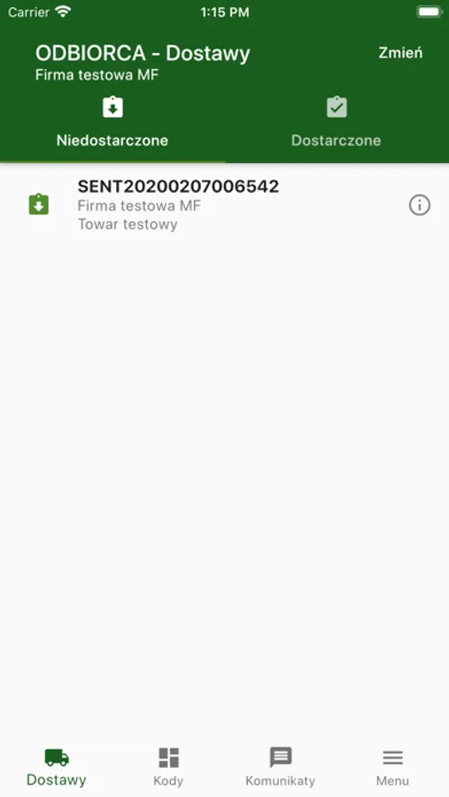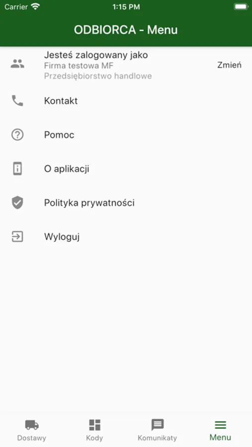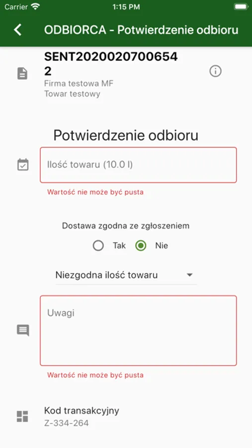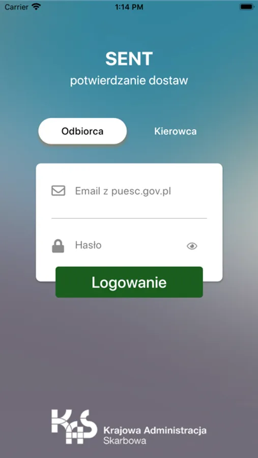 Ta aplikacja jest przeznaczona dla kierowców i odbiorców obsługujących przewozy oleju opałowego ewidencjonowane w testowym SENT.