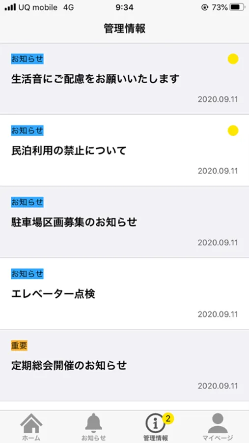 管理組合や管理会社からのお知らせなどの掲示板情報を確認できます。