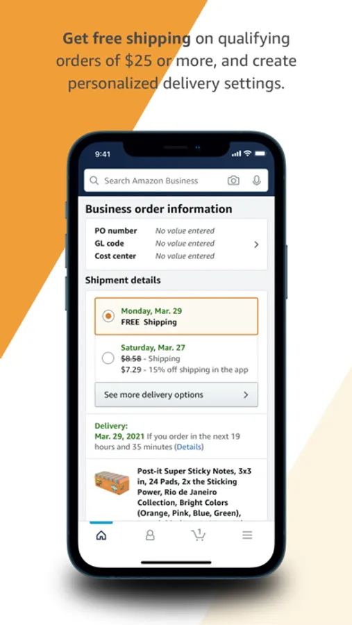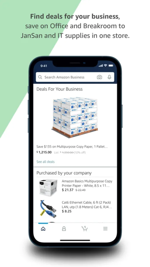 The Amazon Business app is your one-stop shop for finding and making business purchases on the go. Save time with fast and easy search and 1-click purchase for all you need to keep you—and your business—moving. A free Amazon Business account is required.