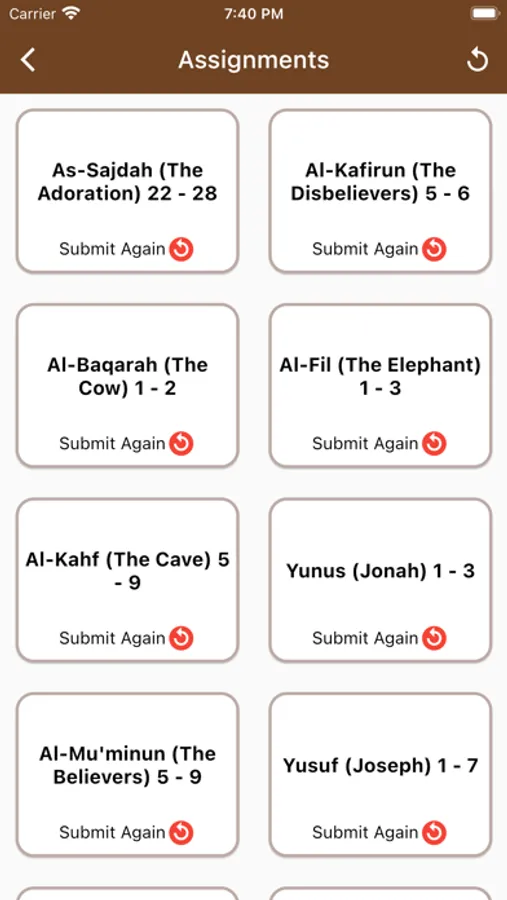 Quran teachers have the option to accept or reject student assignment submission as well as provide feedback as audio messages.
