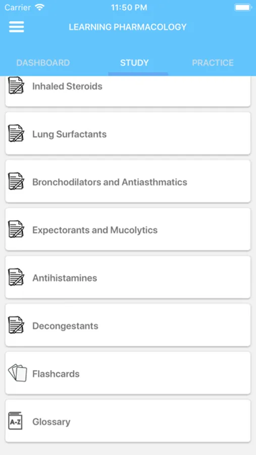 - Study pharmacology terms as flashcards.