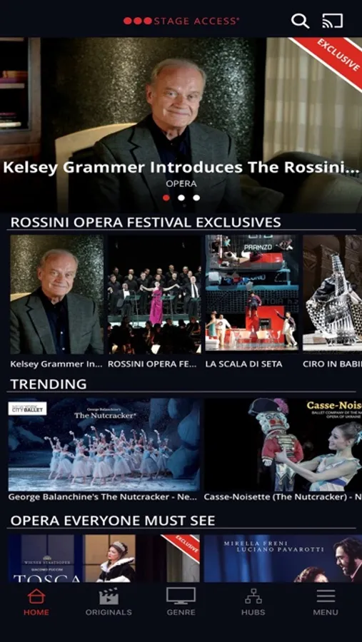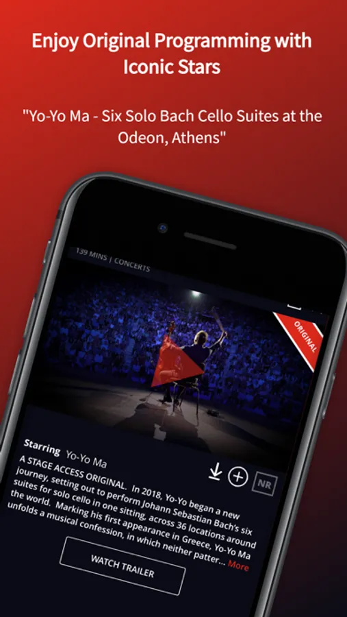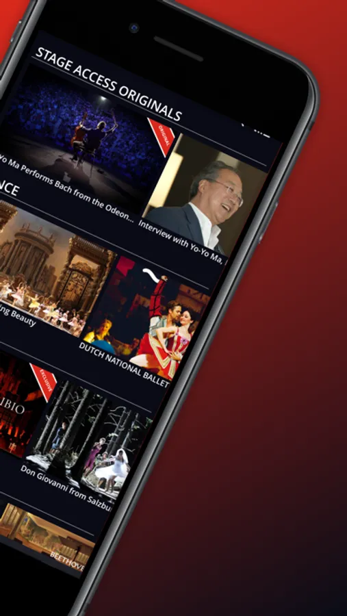 In addition to bringing to you performances from many of the world’s greatest arts houses, companies and performers, such as the Rossini Opera Festival, Jonas Kaufmann, Anna Netrebko, Hong Kong Ballet, Mark Morris Dance Group, Teatro alla Scala, Bolshoi Ballet, Dance Theatre of Harlem, London Symphony Orchestra, Yo-Yo Ma and The 3 Tenors, Stage Access delivers you exclusive content and original programming you won’t find anywhere else.
