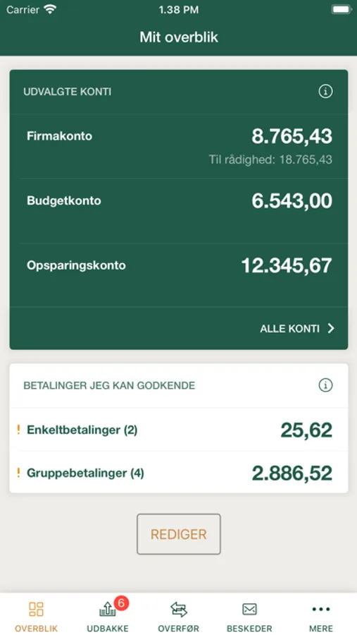 • Overføre penge mellem virksomhedens interne konti og til eksterne konti