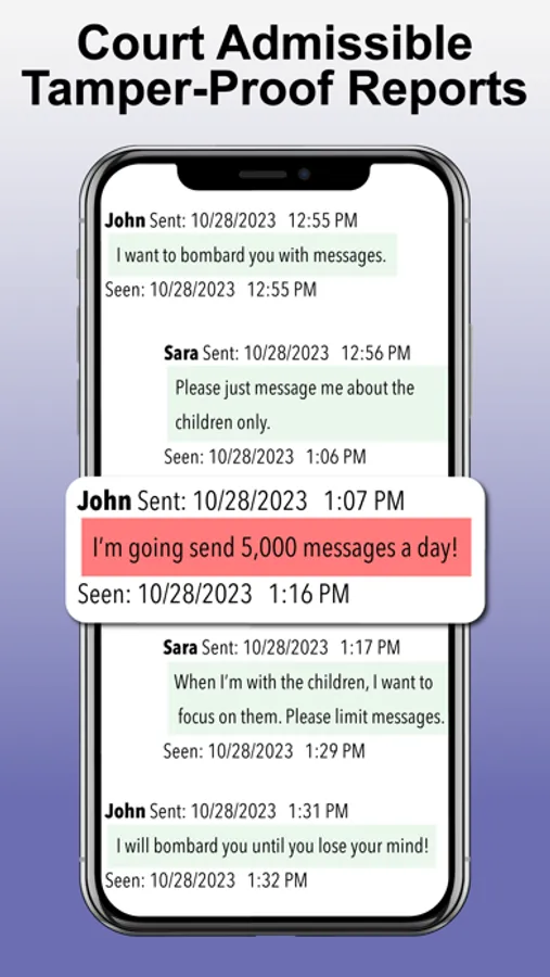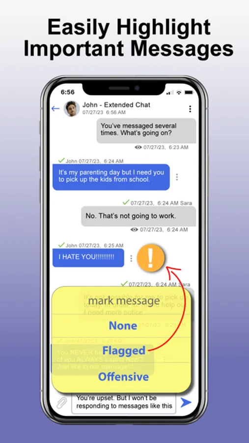 • Export the entire message communication, or just those within a specific time frame to share with others or print for court-admissible use