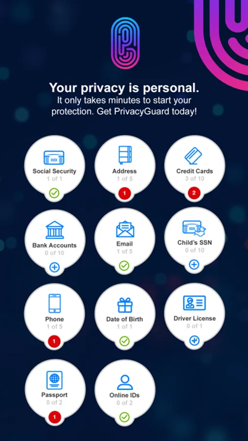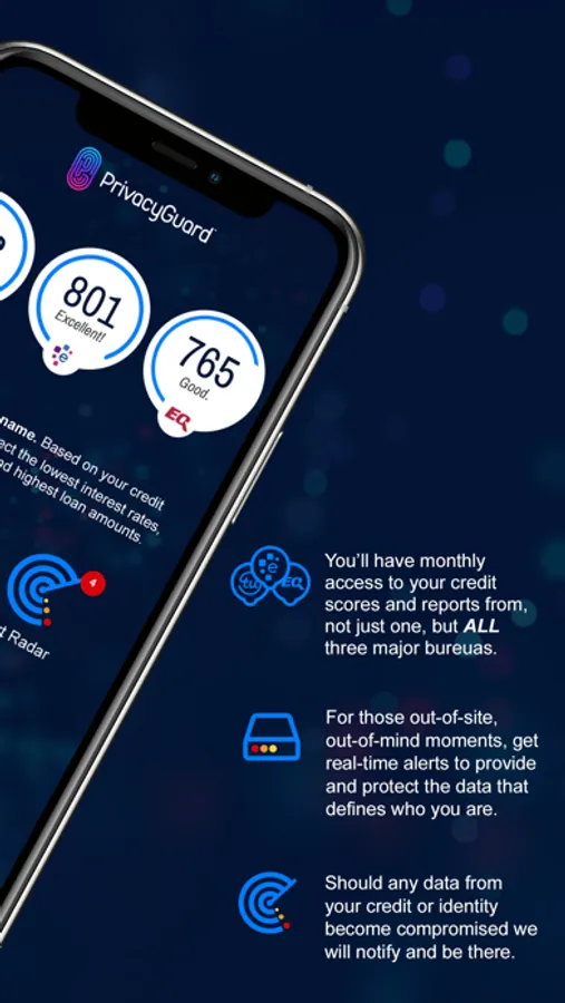 To see more details for any of these identity theft protection benefits, either download the app or visit PrivacyGuard.com, and learn how we help to keep your privacy personal. Tap or click on any identity theft and credit score benefit to learn more.