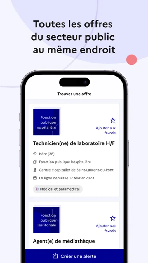 L’application mobile Choisir le service public permet de consulter l’ensemble des offres d’emploi dans les fonctions publiques de l’Etat, territoriale et hospitalière et permet de candidater en ligne sur ces offres d’emploi.