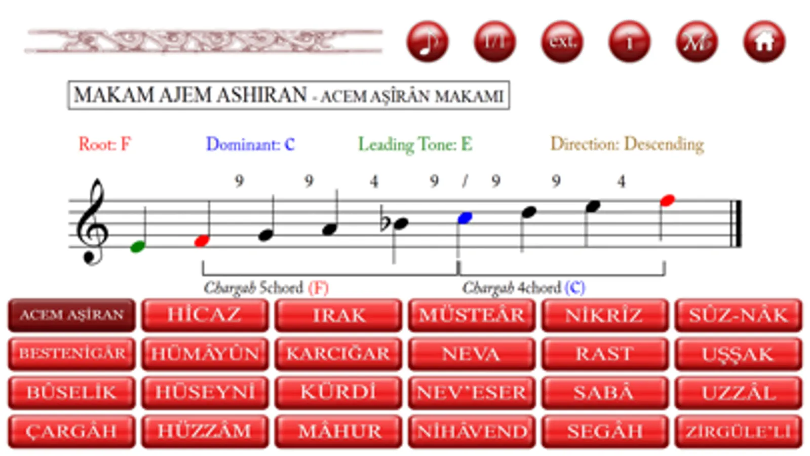 This App provides for each selected makam/maqam - mode: