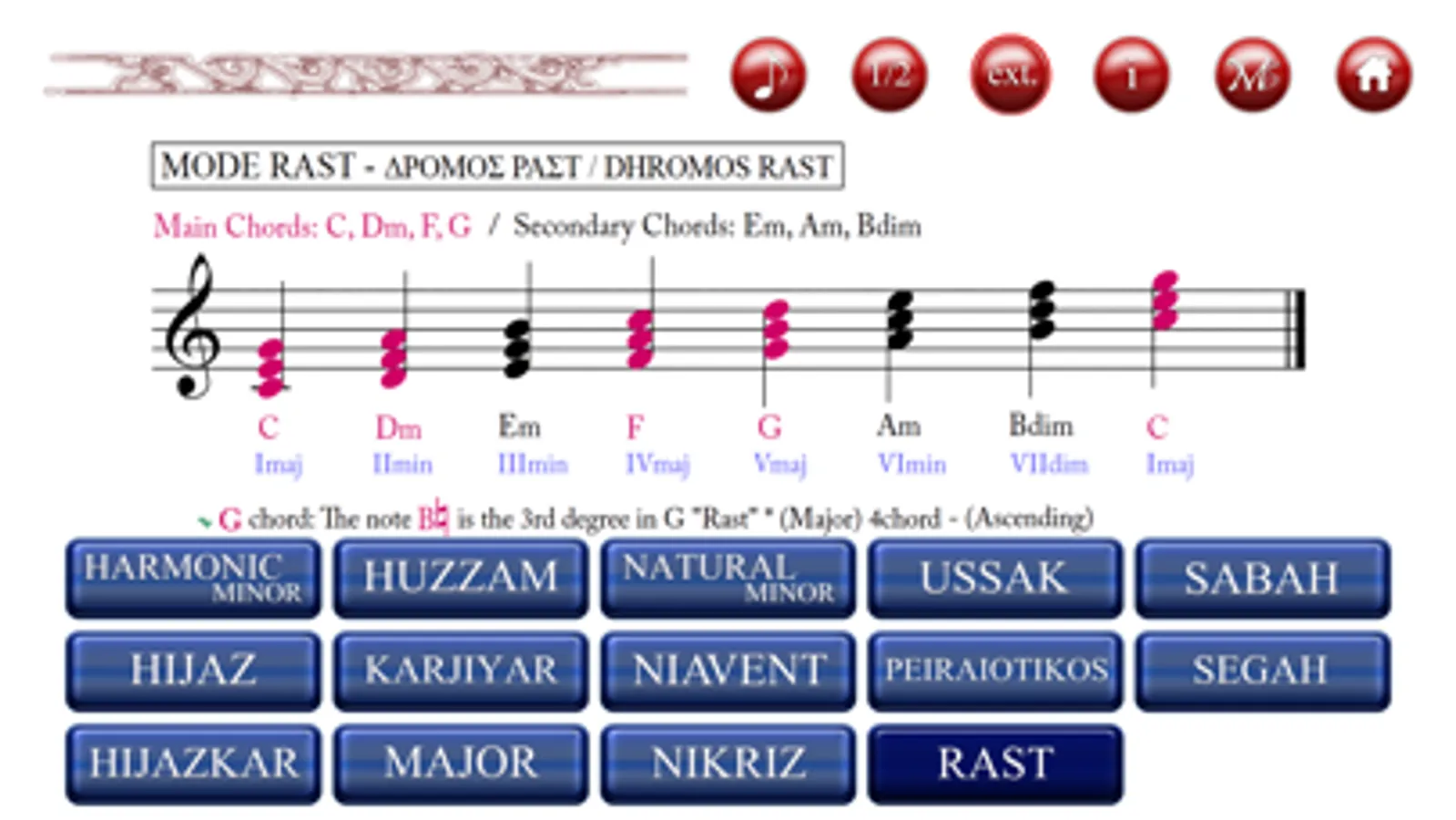 MAQAM/ MAKAM – MODE App is a glossary which provides basic characteristics of four official music theory systems, as they are taught today, such as melodic formulas, intervallic and stem structures as well as music theory interval subdivisions.