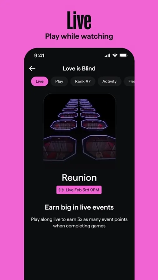 • Live content - Commercials suck. Make them fun by playing along with predictions going live at each commercial break of your fave live shows like The Challenge or The Bachelor