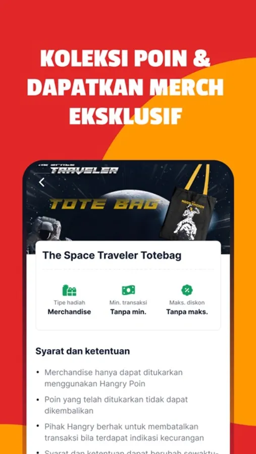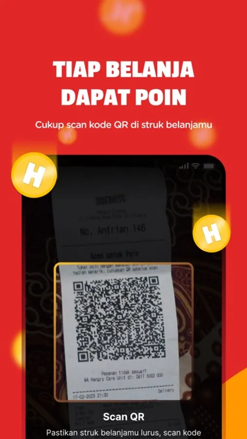 Nikmati hidup lebih hemat dengan cashback Hangry Poin ditiap pesananmu dengan Hangry App. Tenang.. buat kamu yang suka pesan lewat Grabfood, Gofood, atau Shopeefood bisa juga menikmati fiturnya dengan scan struk pembelian brand kami. Poinnya bisa dipakai buat bayar lagi atau ditukar dengan berbagai rewards menarik!